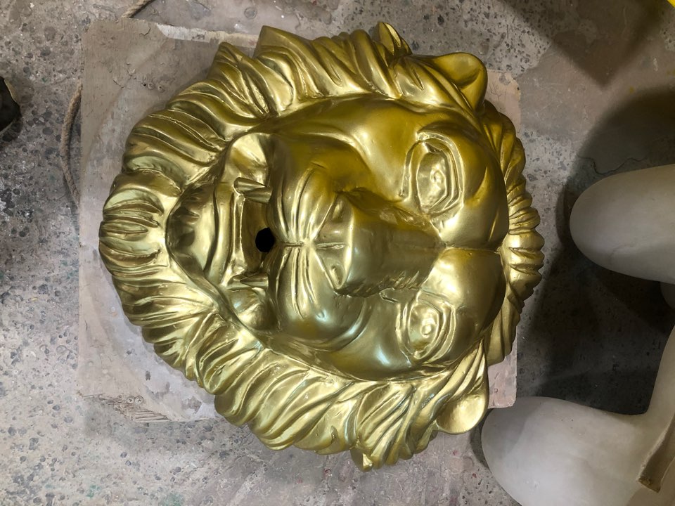 사자상 머리 조형물 입니다. 사자상 재질은 FRP 입니다 .칼라 사자상 칼라는 금색 분체 도장으로 하여 마감