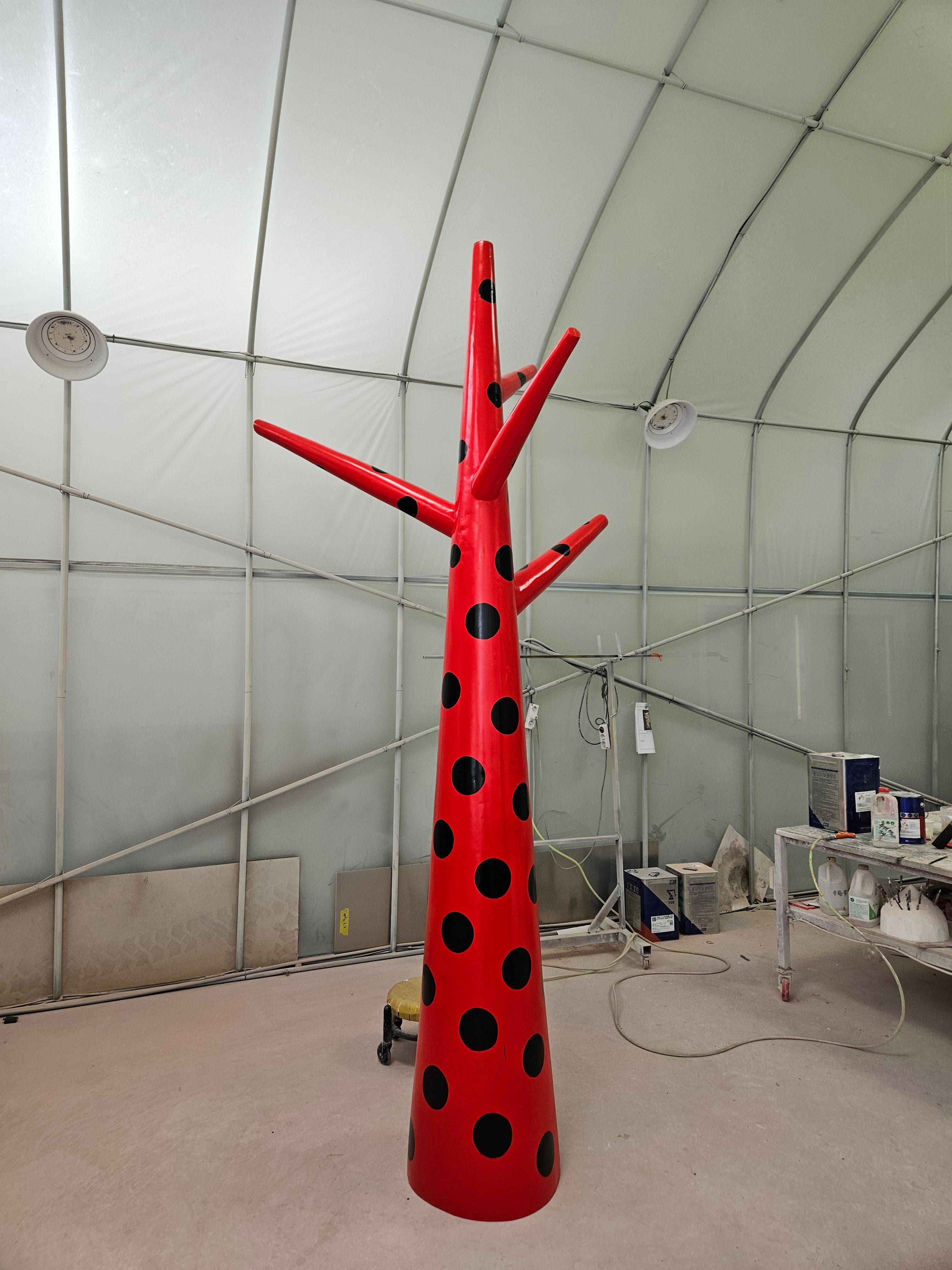 클라이언트의 요구에 따라 강렬한 빨간색을 중심으로 고품질의 도료를 사용하여 조형물을 도색합니다. 이후 내구성 강화를 위한 투명 코팅을 적용하여 색상의 보존력을 높이고, 외부 환경으로부터 조형물을 보호합니다.