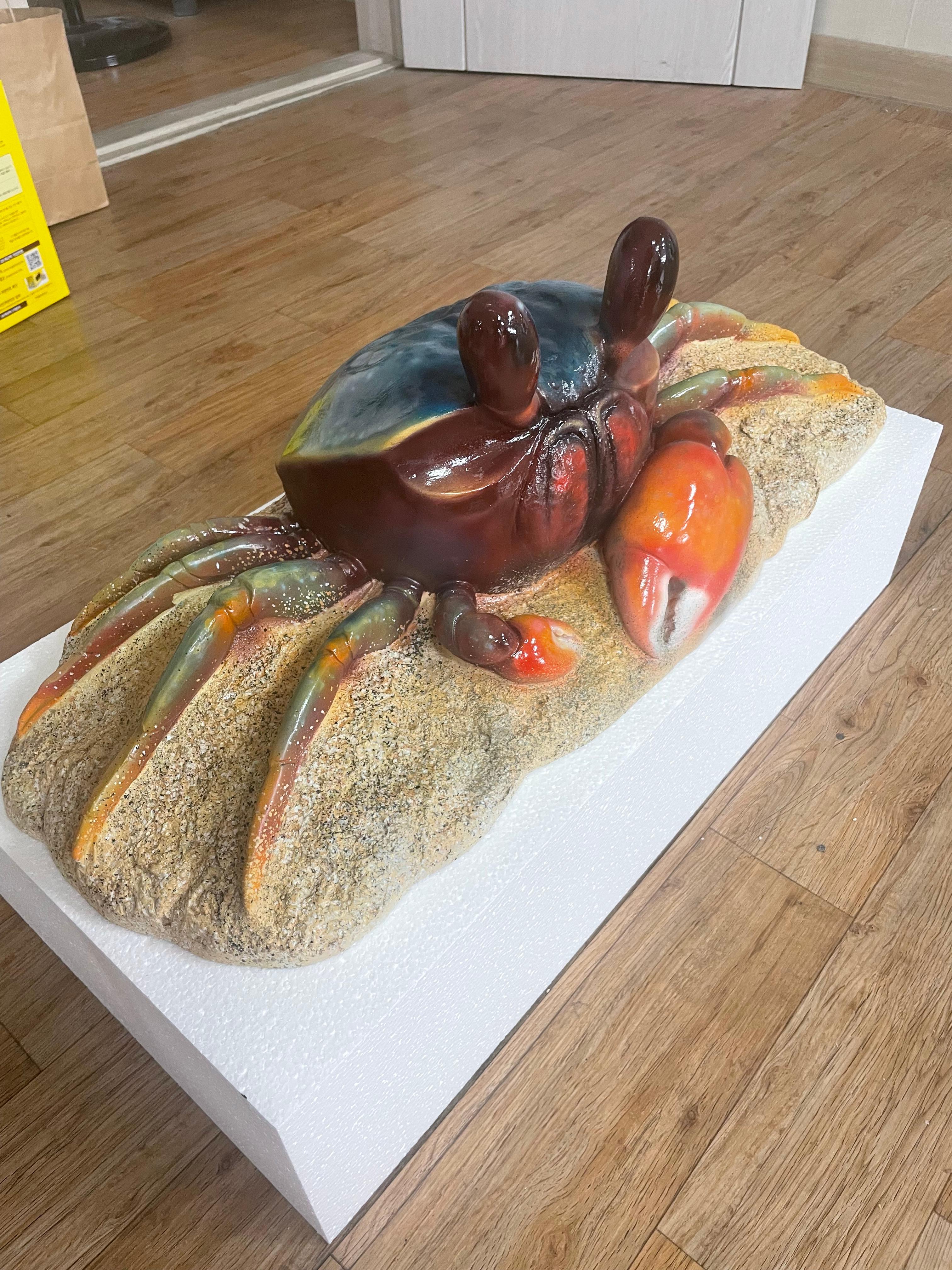 자유로운 형태 구현 및 디테일 정밀성: FRP는 액상 수지를 이용한 몰드 성형 방식으로, 꽃게의 복잡한 다리, 집게발, 등껍질 등의 유기적인 형태와 미세한 표면 질감을 매우 정밀하게 구현할 수 있습니다.