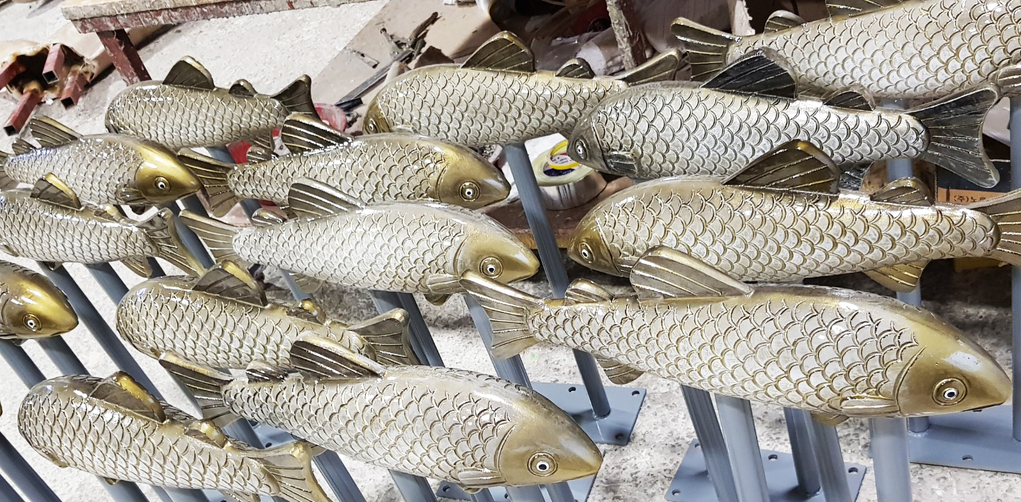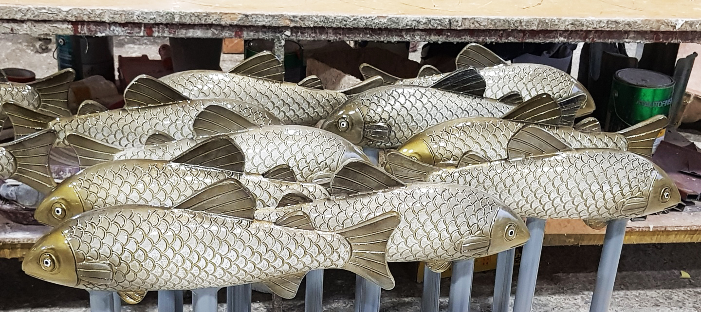 업하는 걸로 해서 잉어 칼라 조형물을 작업했습니다. 수량은 20EA 정도입니다. 알루미늄 주물로 작업한 거라 칼라 잘 안