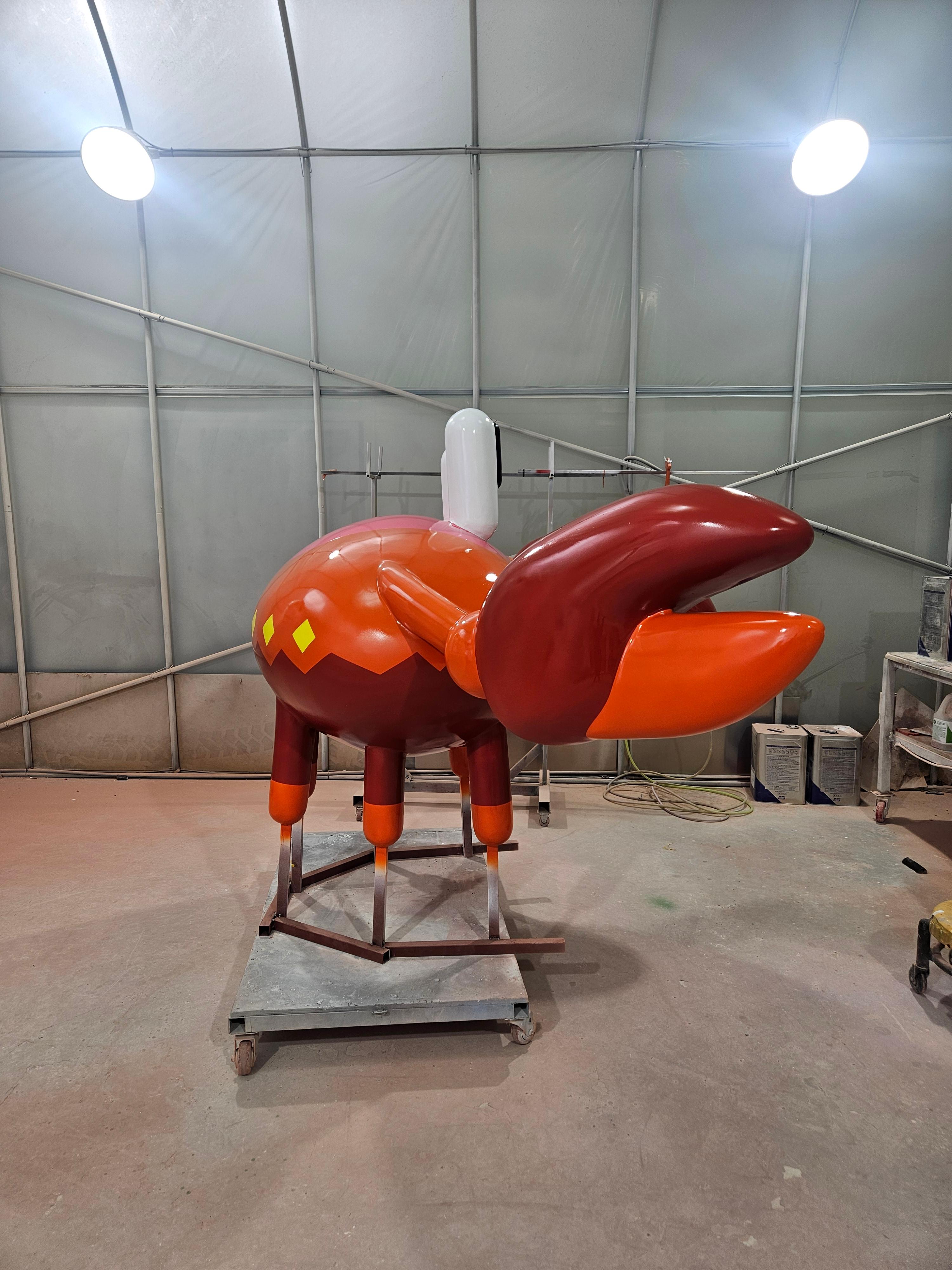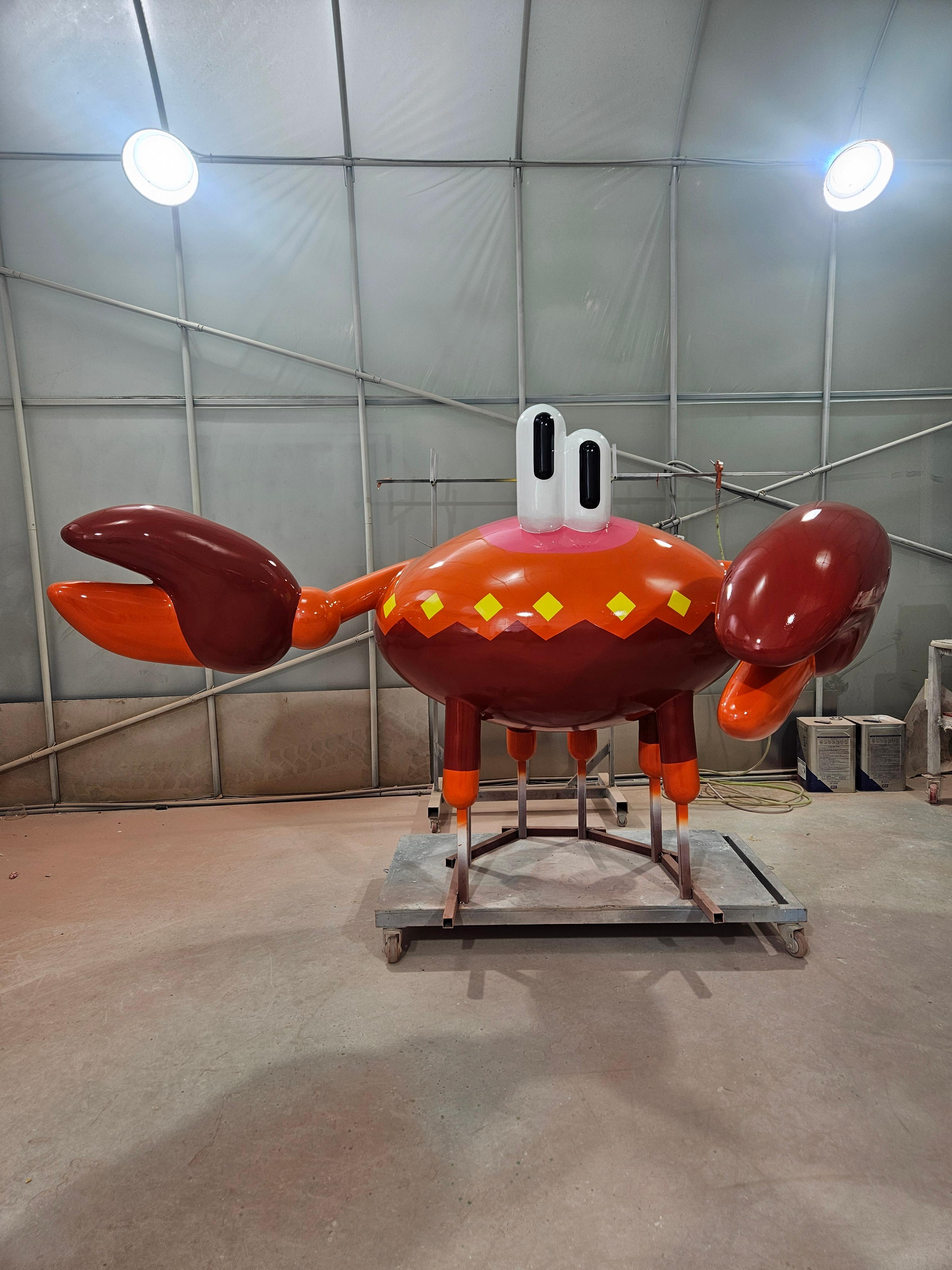 우레탄 도장 (Urethane Painting): 조형물의 시각적 매력을 극대화하는 최종 단계입니다. 꽃게 특유의 붉은색과 눈동자, 집게발의 디테일 등을 우레탄 도료로 정교하게 표현했습니다. 내구성과 내변색성이 뛰어난 우레탄 코팅으로 장기간 유지보수가 용이하도록 마감했습니다.
