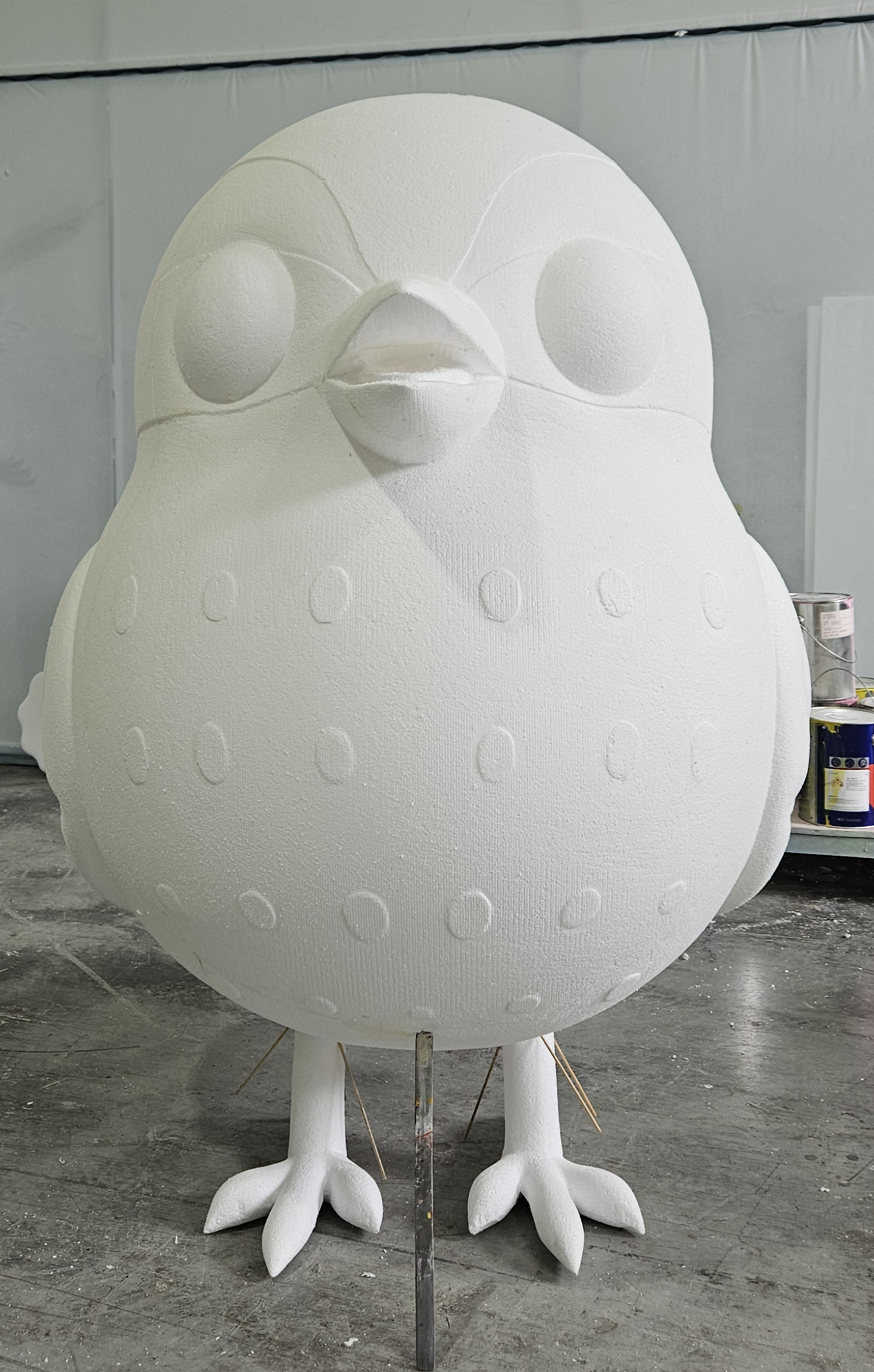 이번 프로젝트는 실제 참새의 형태적 특징을 기반으로, 보다 '큐티'한 감성을 더한 캐릭터 조형물을 제작하는 것이 목표였습니다. 이는 대중에게 더욱 친근하게 다가가고, 설치될 공간에 긍정적이고 활기찬 분위기를 조성하기 위함입니다. 조형물의 사이즈는 높이 약 1000~1200mm로, 다양한 실내외 공간에 배치하기에 적합한 규모입니다.