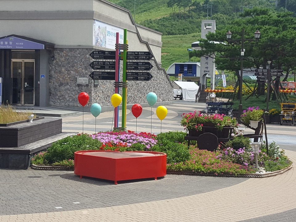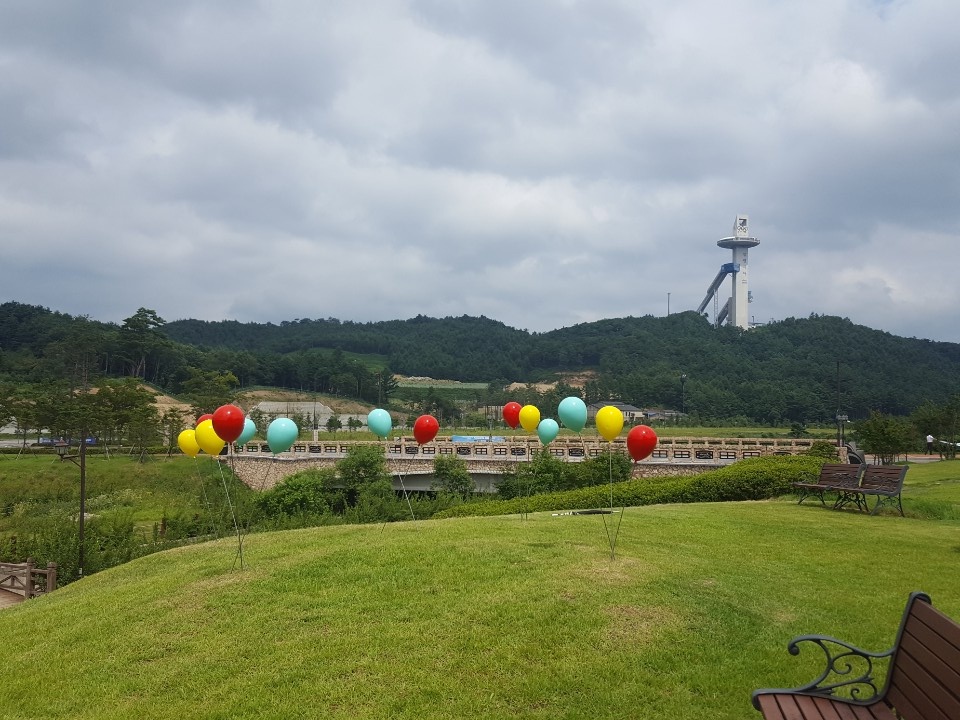 많은 사람들이 여행을 다녀오는 알펜시아 리조트입니다. 알펜시아리조트 근처에 풍선 조형물 대량으로 설치 납품 하